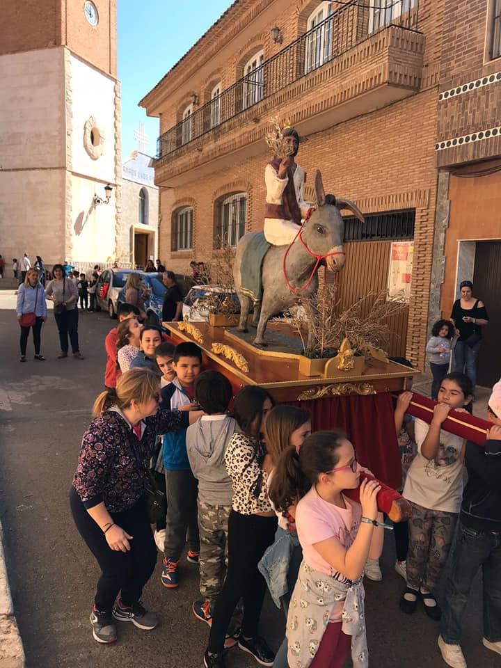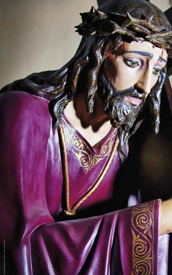Hábito: Van con camisas de diferentes tonos para cada paso (morada para el nazareno, roja para el crucificado y blanca para la virgen), fajín blanco y pantalón negro excepto para la Borriquita que la llevan niños sin portar hábito y para la Virgen además, van mujeres vestidas de mantilla.