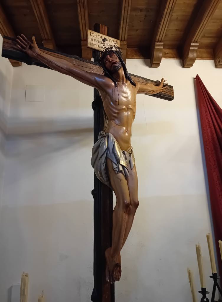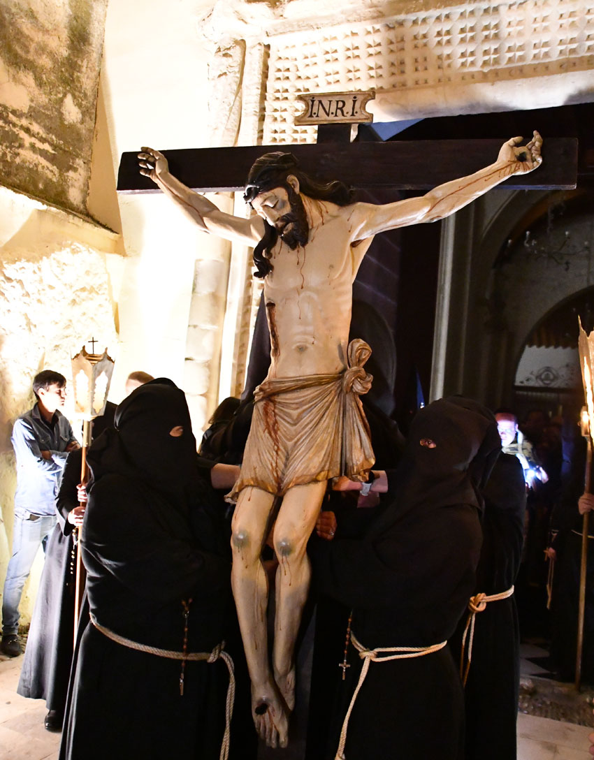 La Cofradía del Santísimo Cristo del Perdón, conocida popularmente como "El Silencio", tiene sus orígenes en 1962. Imagen: La talla del Santísimo Cristo del Perdón es la más antigua de las que participan en las procesiones de Baena.