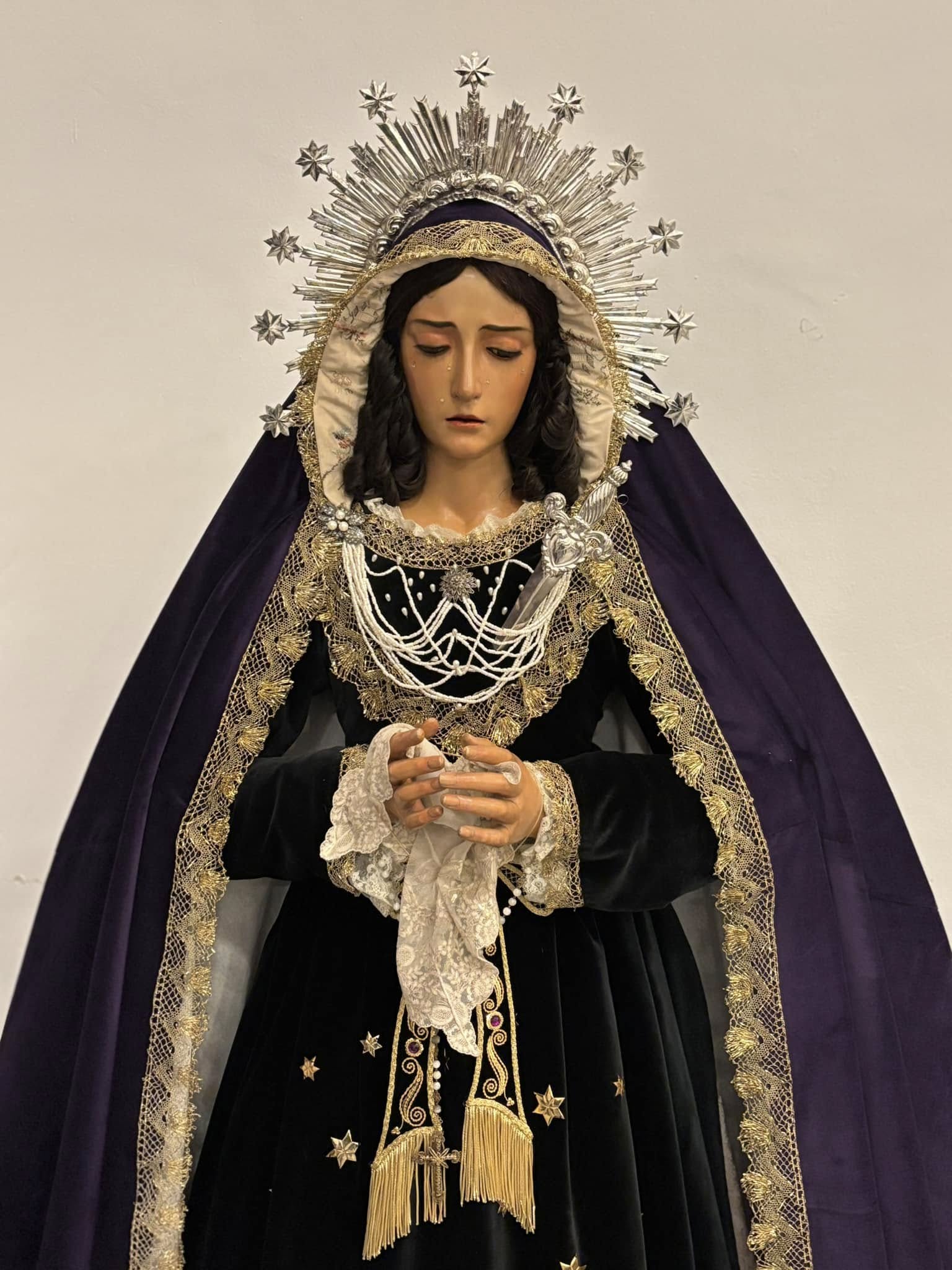 Hábito: Viernes Santo: Tunica y antifaz negros con detalles en color amarillo oro. Jueves Santo: Túnica y antifaz burdeos con cíngulo amarillo.