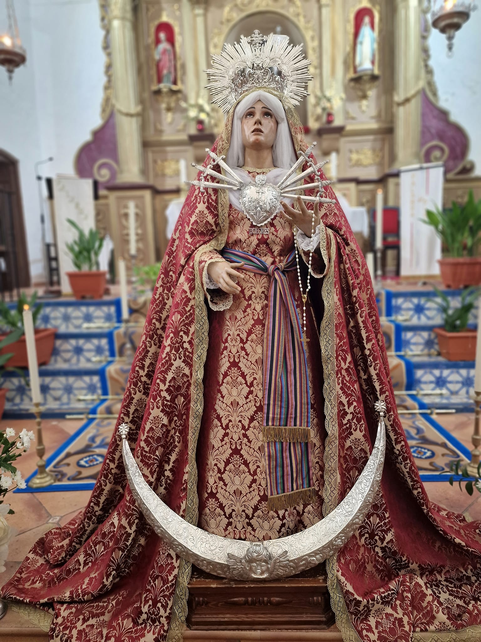La Virgen de los Dolores es la patrona de Castaño del Robledo, un pequeño municipio en la provincia de Huelva, Andalucía. Su devoción se remonta al siglo XVIII, cuando en 1774 se fundó la Congregación de la Virgen de los Dolores, asociada a la Orden Tercera de los Siervos de María.