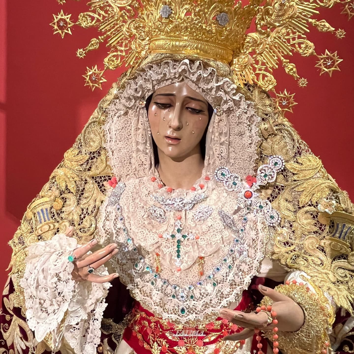 Durante los siete primeros años desde su fundación la Hermandad procesionó y mantuvo como titular a una Virgen Dolorosa propiedad de un hermano gitano que la cedía. Pero será en verano de 1946 cuando se decida encargar una nueva titular en propiedad, cuya tarea encarga la Hermandad al escultor cordobés Juan Martínez Cerrillo.