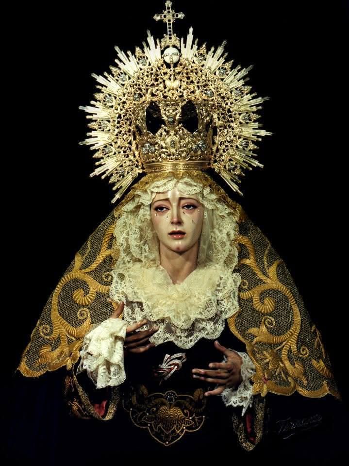 Durante los siete primeros años desde su fundación la Hermandad procesionó y mantuvo como titular a una Virgen Dolorosa propiedad de un hermano gitano que la cedía. Pero será en verano de 1946 cuando se decida encargar una nueva titular en propiedad, cuya tarea encarga la Hermandad al escultor cordobés Juan Martínez Cerrillo.