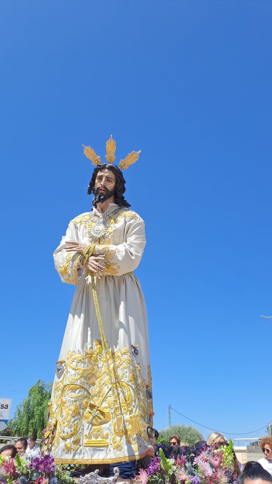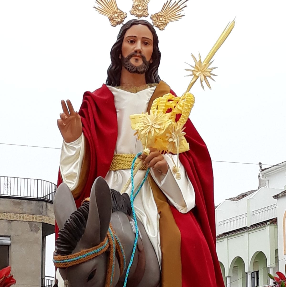 La imagen de Nuestro Padre Jesús en su Entrada Triunfal en Jerusalén, representando a Jesús montado en un pollino siendo aclamado por la multitud, es central en las celebraciones del Domingo de Ramos. Esta escena marca el inicio de la Semana Santa y ha sido objeto de devoción en Cuevas de San Marcos.