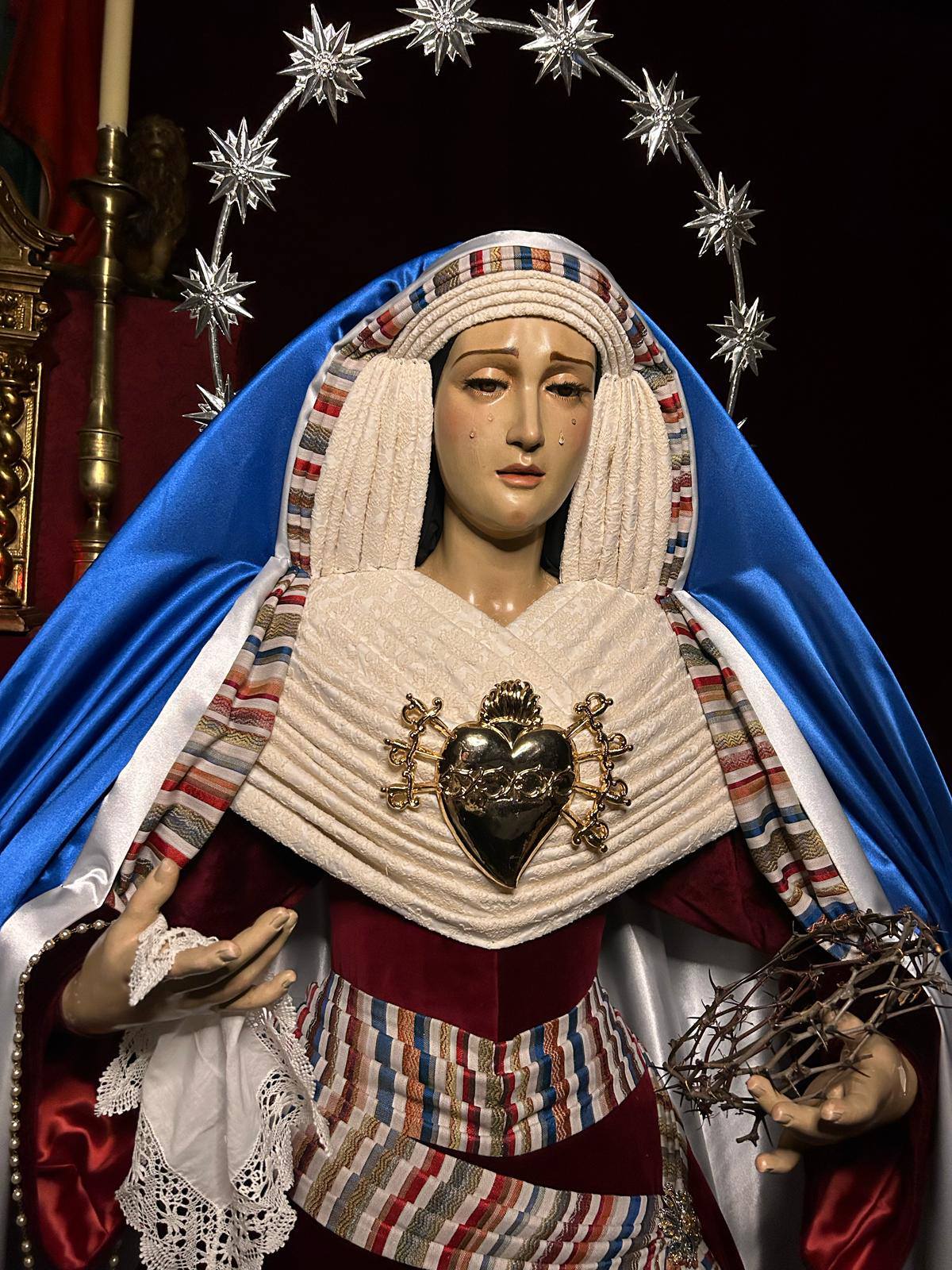La imagen de María Santísima del Mayor Dolor es una dolorosa que representa el sufrimiento de la Virgen María tras la crucifixión de su hijo, Jesús. Esta advocación mariana es común en diversas localidades españolas, donde las cofradías dedicadas a ella organizan procesiones y cultos, especialmente durante la Semana Santa.
