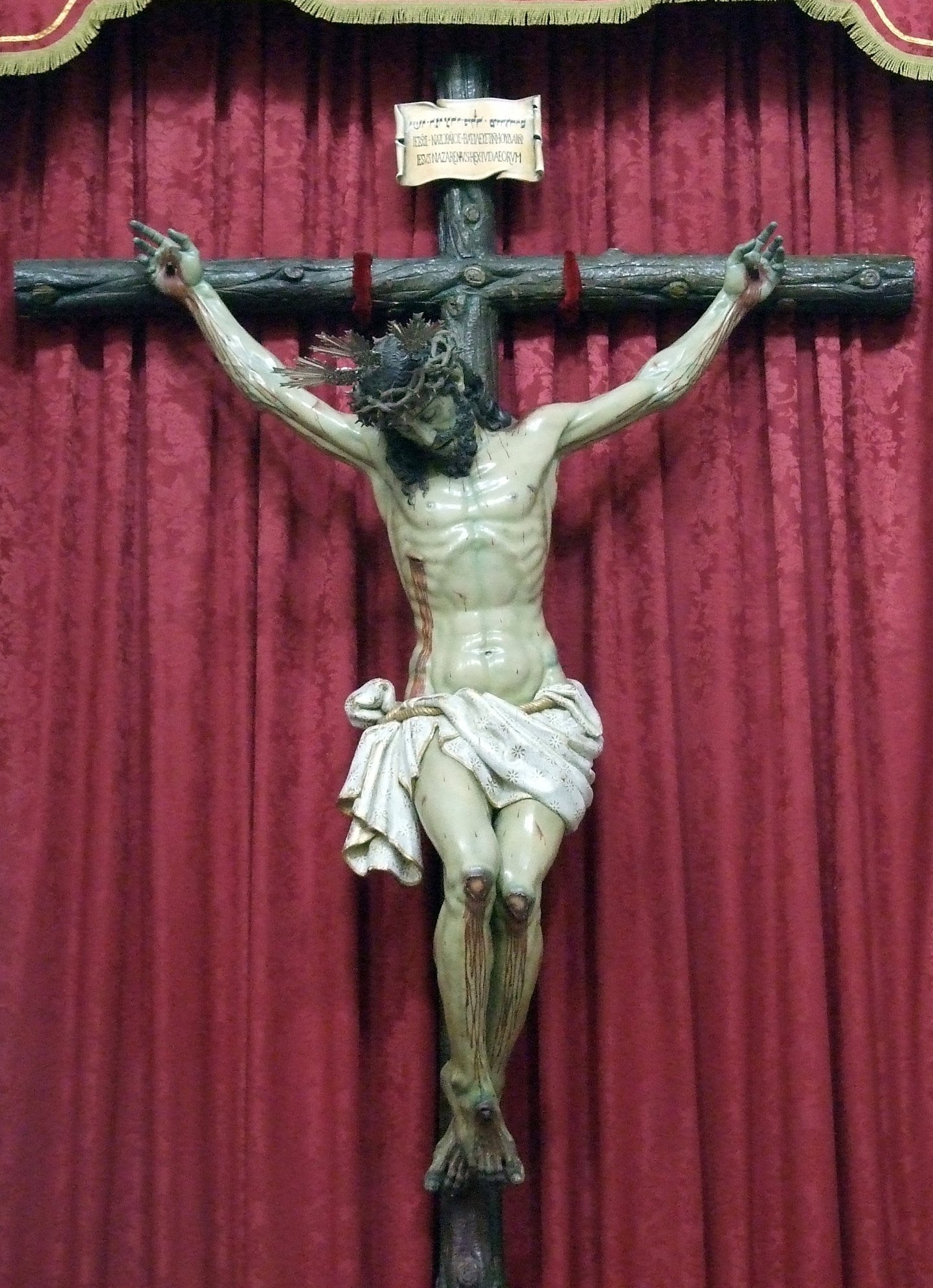Santísimo Cristo del Perdón y La Pobreza, de autor anónimo del S. XVIII. Donado por el Iltmo. Sr. D. José Blanco Sancha, Deán de la Santa Iglesia Catedral de Córdoba, a la Parroquia de la Veracruz en 1919. Restaurado por el conservador y restaurador D. Salvador Guzmán Moral en Cabra en 2008.