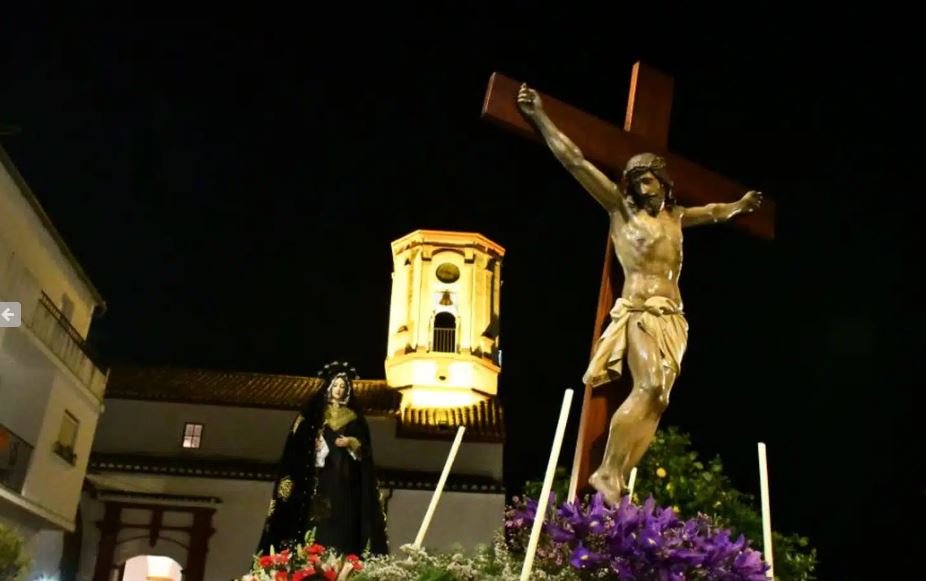 En la tarde-noche del Viernes Santo llega uno de los acontecimientos más esperados, y es que las imágenes de la Virgen de los Dolores y del Cristo Crucificado salen del templo sobre sus bellos tronos portados por vecinos para realizar el desfile procesional de La Soledad en un ambiente cargado de fervor, recogimiento y solemnidad.