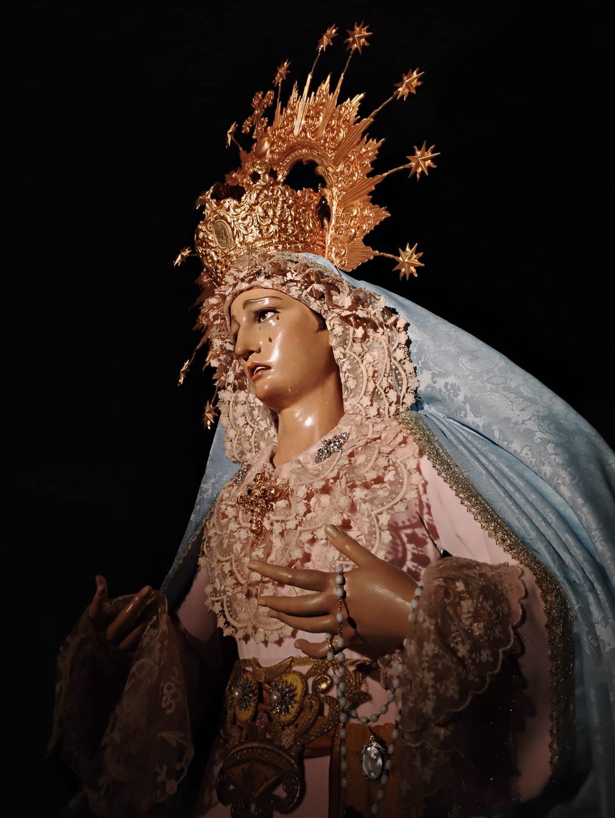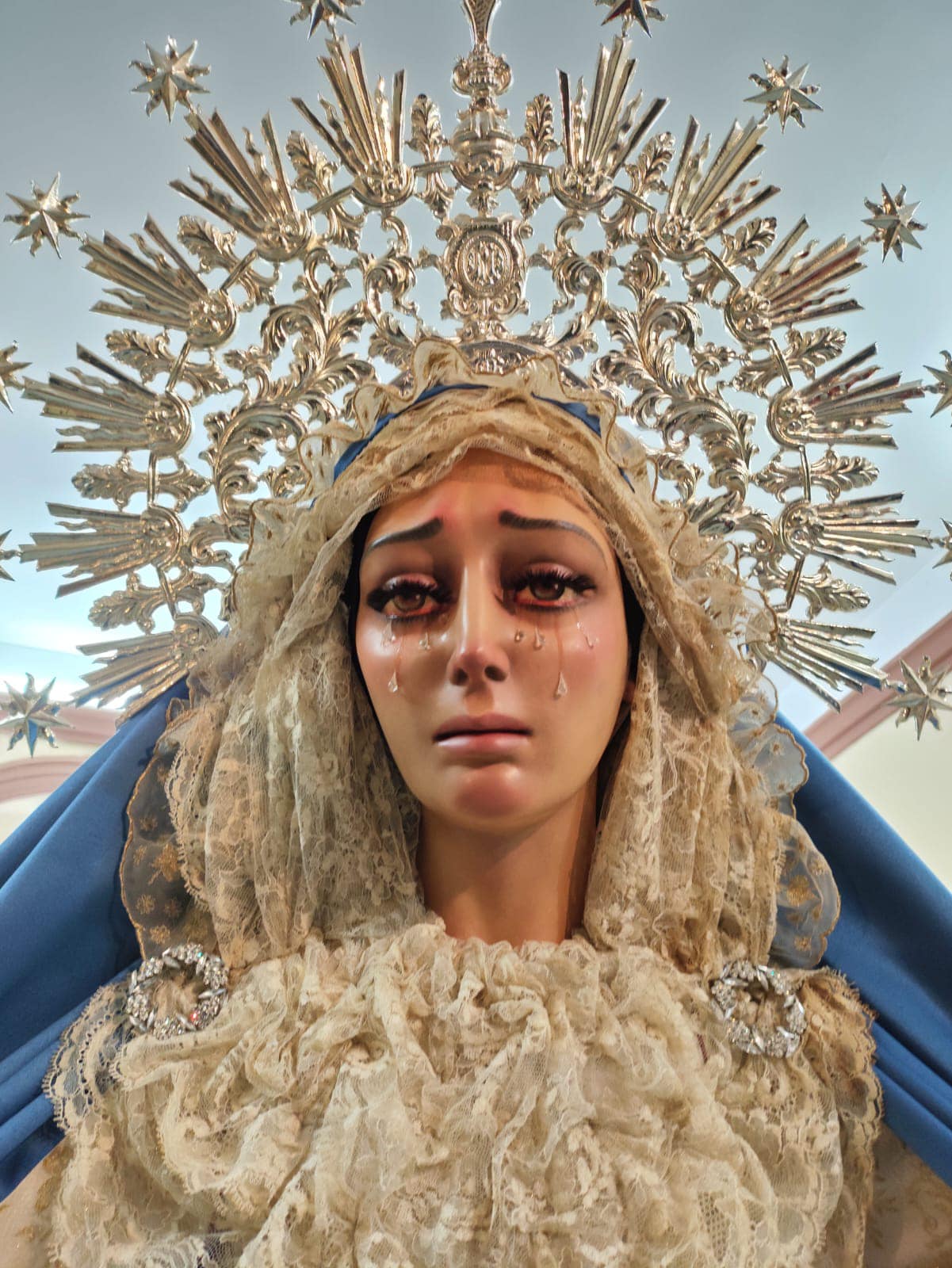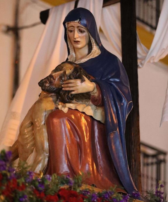 La iconografía es obra de D. Francisco Palma Burgos (1943), esta imagen representa el momento desolador de la Virgen cuando el Señor, imagen del mismo autor y mismo año, está yaciente en su regazo.