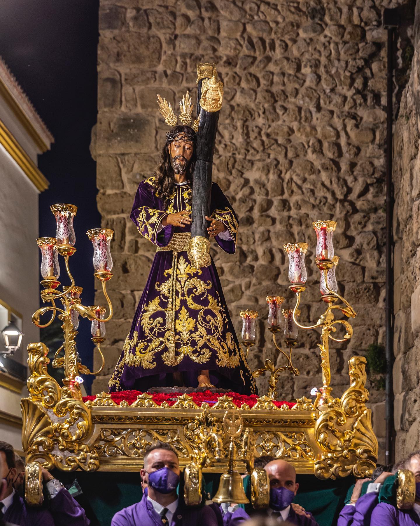 La Cofradía de La Columna vuelve a procesionar en la noche del Jueves Santo. El silencio acompaña al Santo Cristo de la Vera Cruz en su recorrido por las angostas calles del casco histórico marbellí. La estremecedora imagen es obra del escultor marbellí Juan Carlos García (2000).