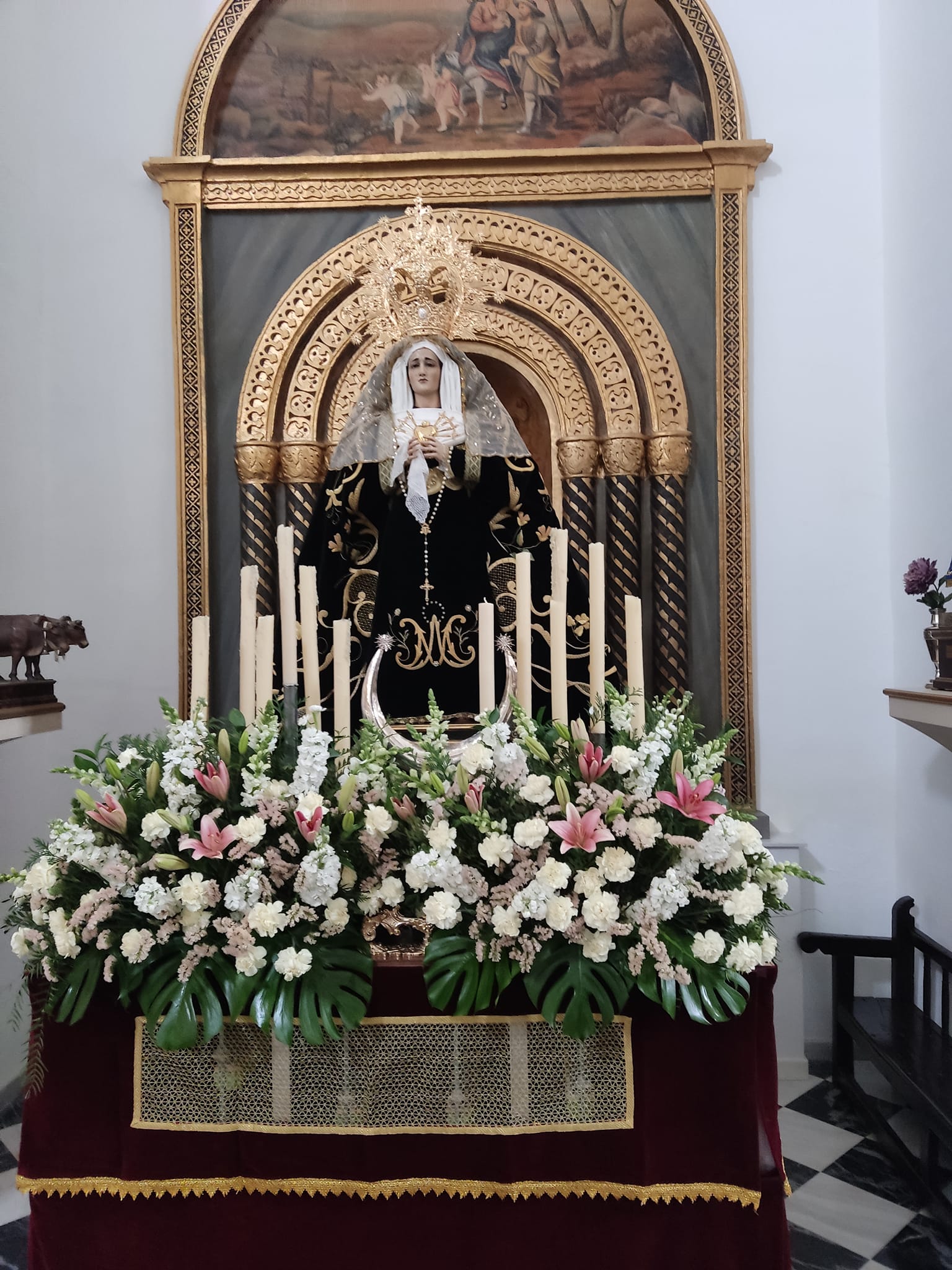 Nuestra Señora la Virgen de los Dolores: Simboliza el sufrimiento y la compasión de María durante la pasión de su hijo, evocando sentimientos de recogimiento y fe entre los fieles.