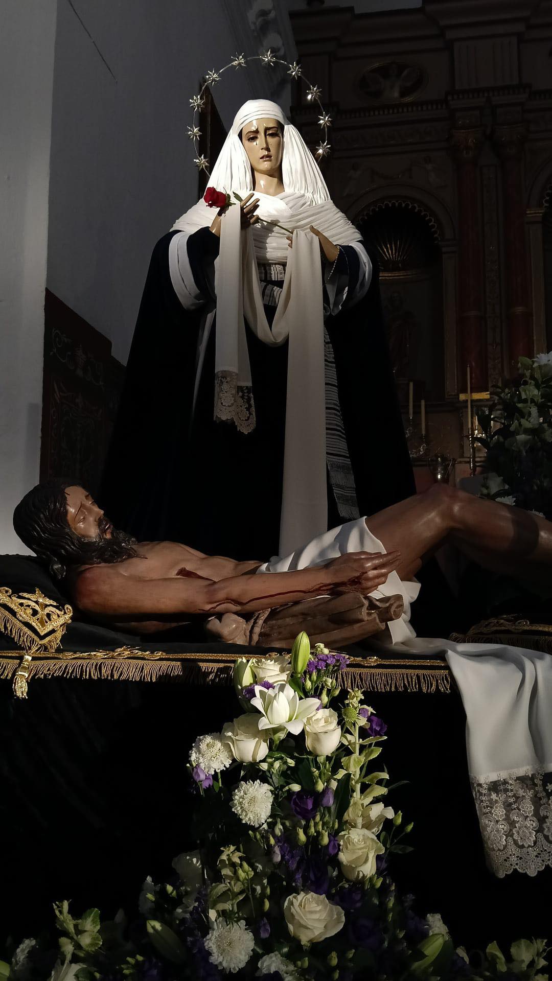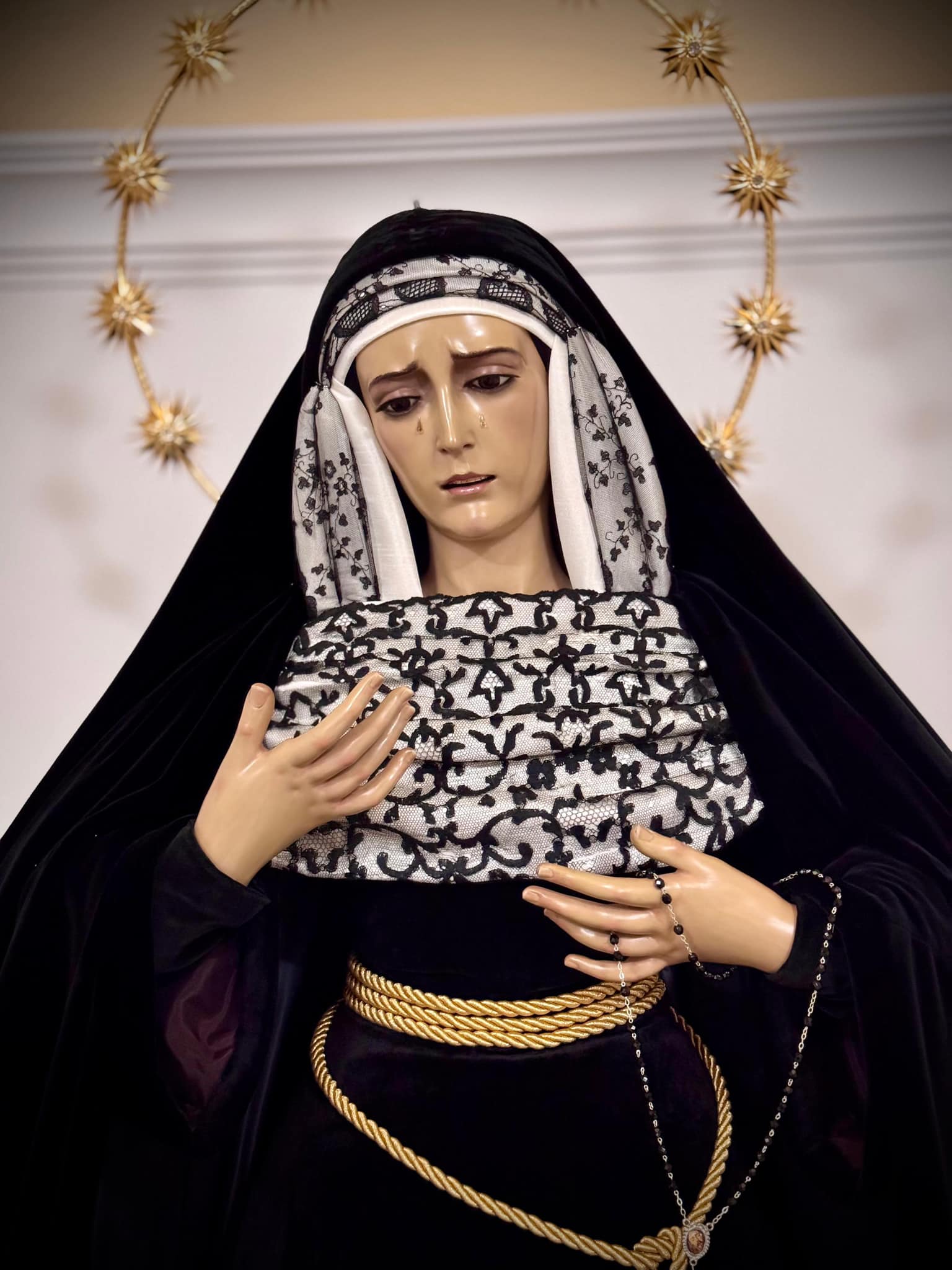 Hábito: Durante la estación de penitencia los cofrades visten túnicas y antifaz de color negro, con capas de color verde. Usan zapatos y guantes negros, y botonaduras y cíngulo de color verde. En el hombro izquierdo, sobre la capa, el escudo de la hermandad.
