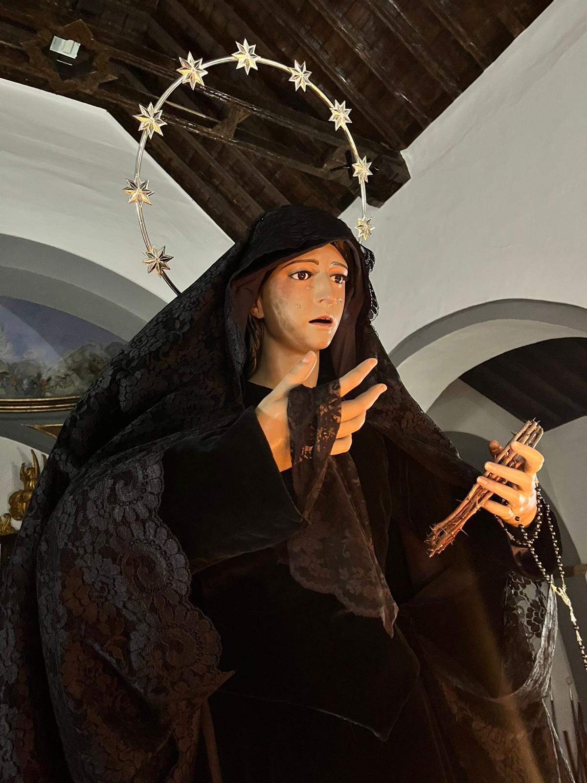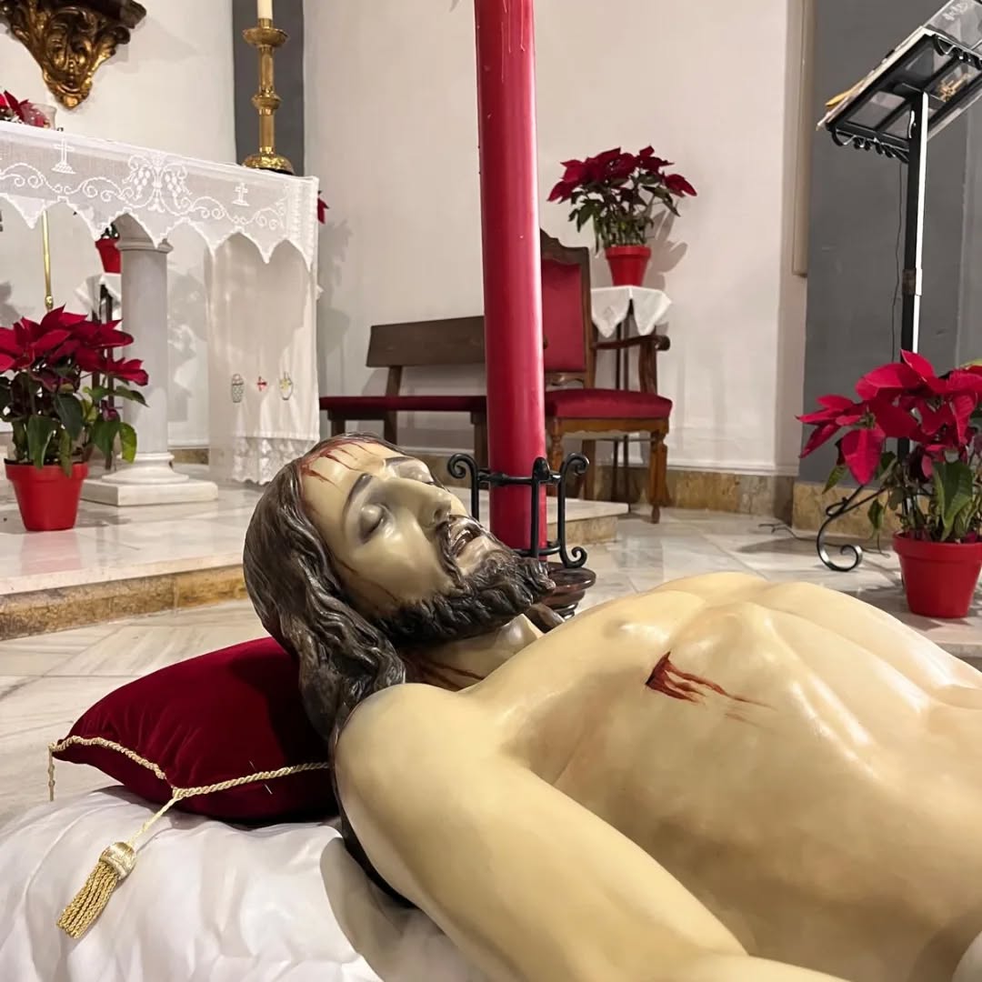 Hábito: Nazareno: Túnica de cola y antifaz morados con cíngulo amarillo. Entierro y Dolores: Túnica de cola negra y cíngulo de esparto. Mujeres de mantilla negra. Borriquita: No llevan hábito. Portan palmas. Resucitado: Túnica de cola blanca con cíngulo de esparto.