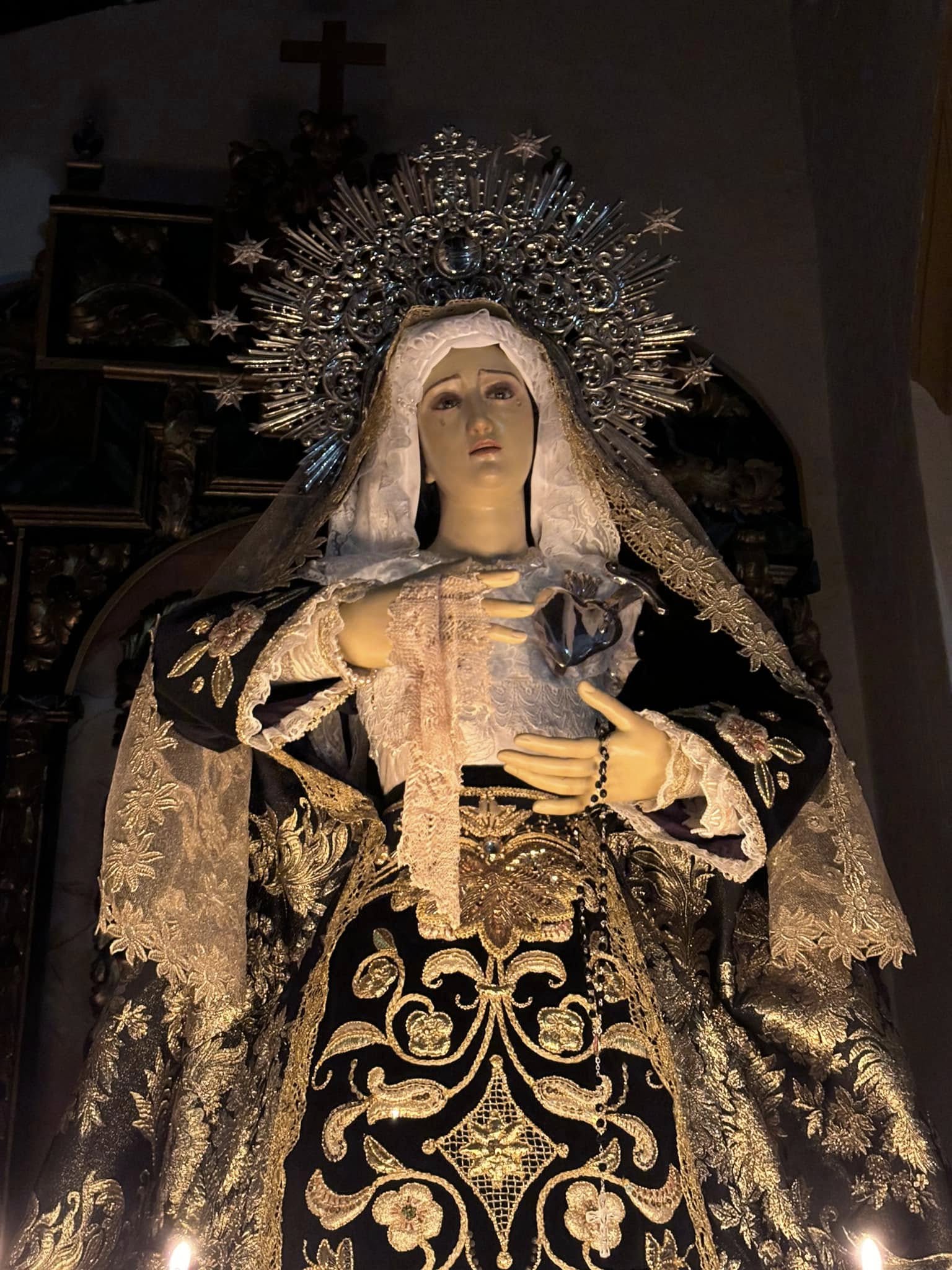 La imagen de Nuestra Señora de los Dolores, una talla seriada de los talleres de Olot, fue bendecida en 1955 y se convirtió en la titular de la parroquia.